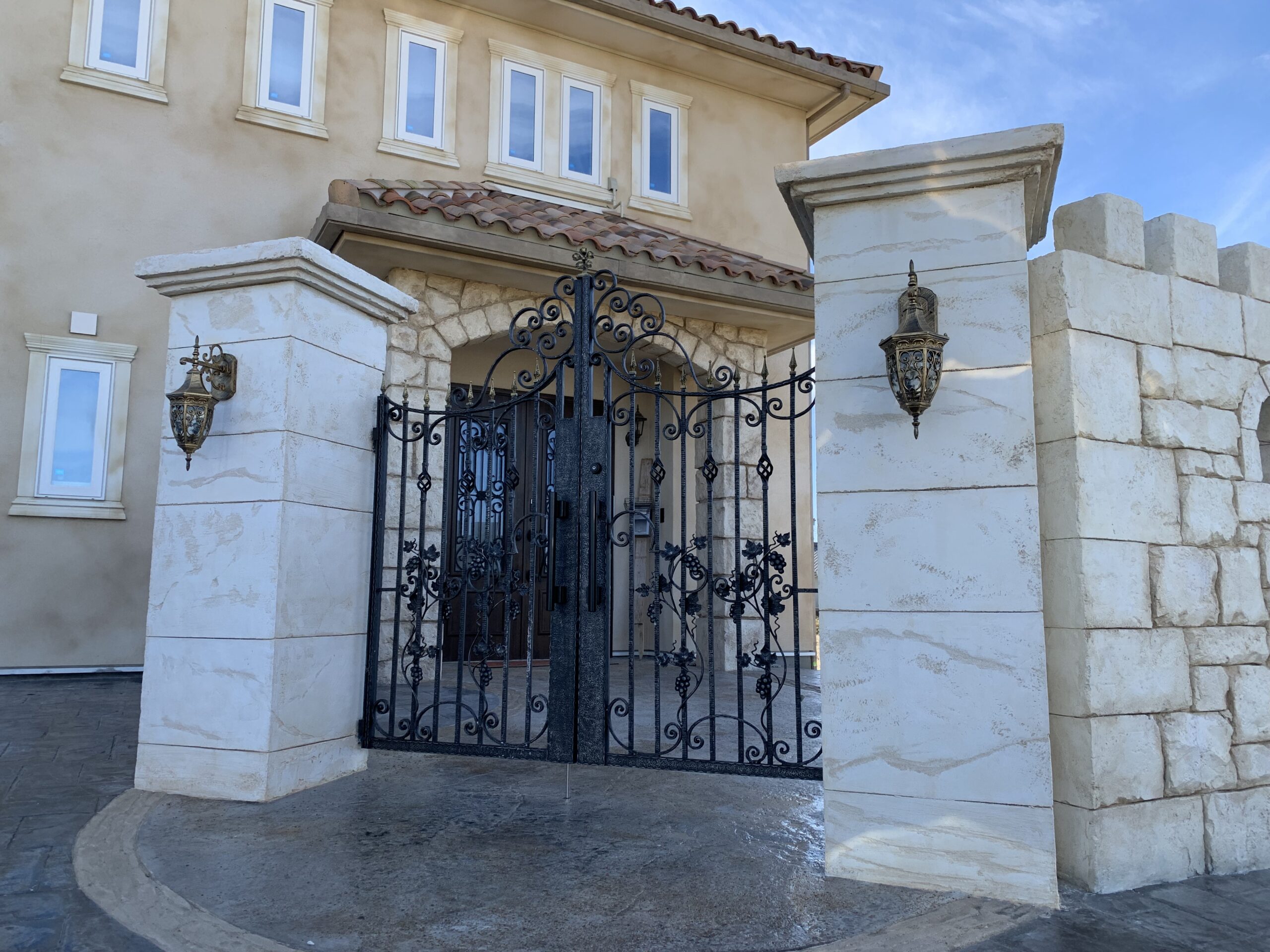 常滑市で輸入住宅の外構工事をいたしました 門塀はモルタル造形で建物と相性バッチリ